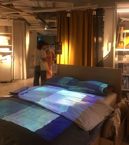IKEA opened their first small-format concept store last month in Shanghai. The new format with its 3,000 m2 total area is much smaller than the IKEA stores we are used to. The store takes into consideration the customer’s working location, shopping methods, and living conditions. It creates a brand new home retail experience integrating shopping, leisure and social interaction. The products are more concentrated, clothing and apparel can be customized. These products are chosen based on the characteristics of the surrounding customer groups. Projectors are placed over the beds to display different duvet patterns so they don’t require addition display area. Due to the limited area and the advanced electronic payment methods, the shopping speed is increased.
