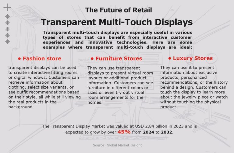 Transparent displays enable interactive shopping experiences, allowing customers to explore products digitally while viewing real items in-store.
