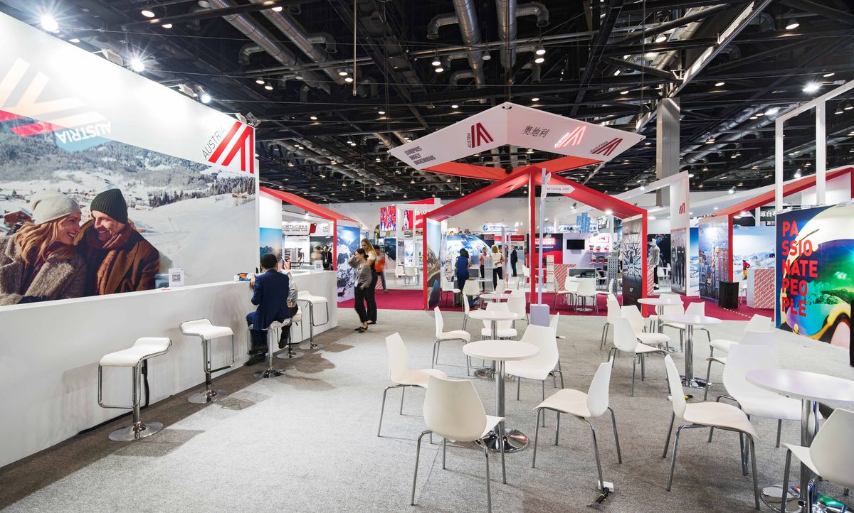 在2018国际冬季运动(北京)博览会上,由奥地利商会主办的展位为26家奥地利冬季运动参展商提供了展示平台。斐思达品牌设计公司的设计概念利用了奥地利国旗的颜色来营造出一个时尚和吸引眼球的展台。在整体设计中,结构大胆的形状被结合在一起,提供了分离的错觉,从而为不同的参展商提供了独立的空间。设计目的是通过动感的设计最大限度地利用空间和功能。